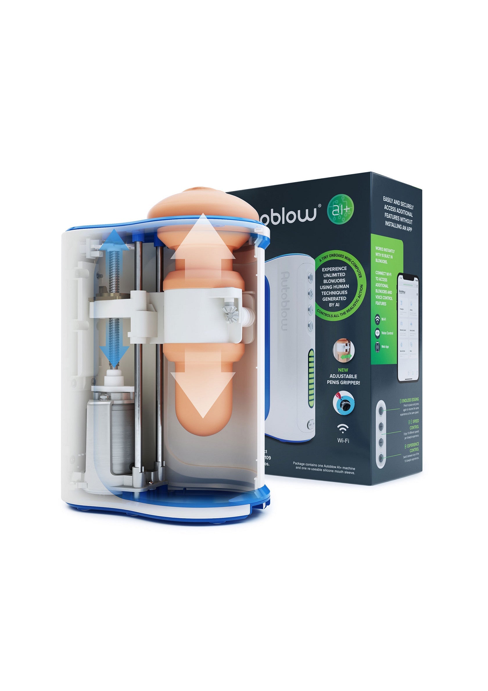 Deze nieuwe Autoblow AI+ editie heeft een allereerste verstelbare penisgrijper waarmee je de strakheid kunt instellen voor jouw unieke anatomie. Deze nieuwe editie levert ook de lagere snelheden waar onze gebruikers om vroegen, wat zorgt voor meer sensuele sensaties. Tot slot is de nieuwe AI+ fluisterstil zodat je prive kunt genieten op locaties die met het vorige model niet mogelijk waren.