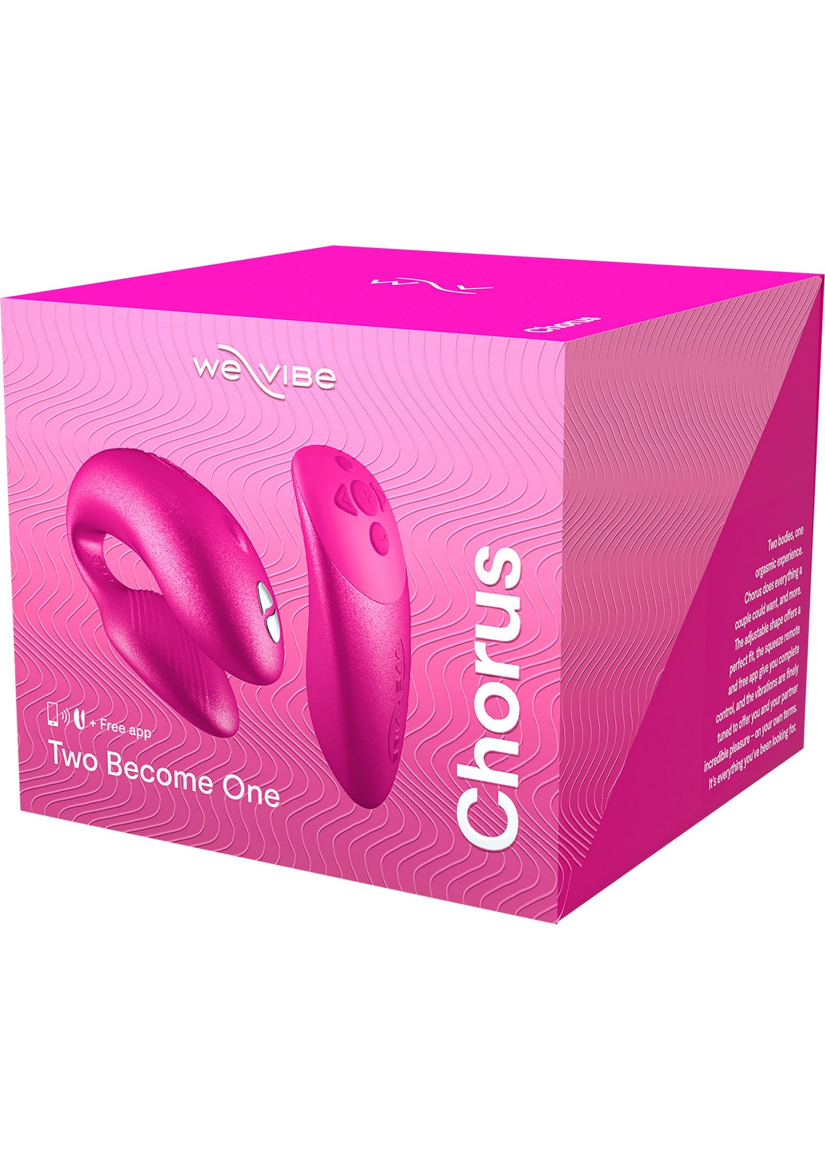 When playing in the same room, use the convenient remote to change vibration pattern modes as well as the intensity from a distance of up to 3 meters. Chorus can also be controlled by the We-Connect app. Enjoy pleasure over any distance. Both you and your partner download the We-Connect app to your smartphones.