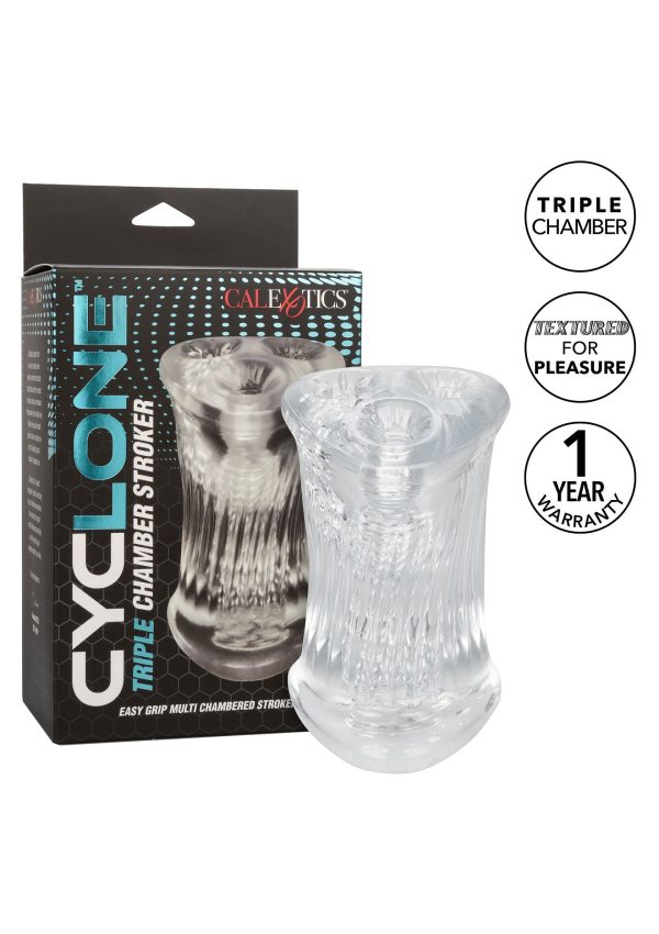 Verhoog het plezier met de Cyclone Triple Chamber Stroker. Deze premium masturbator heeft een gebruiksvriendelijk ontwerp voor comfortabele en veilige controle, waardoor je genot wordt geïntensiveerd. Het ontwerp met drie geribbelde kamers levert sensationele ervaringen op, waardoor je naar meer verlangt. Het transparante ontwerp dompelt je onder in visueel genot, wat de opwinding verhoogt voor een opwindende ervaring. Het zachte, strakke en rekbare materiaal biedt een realistisch gevoel, waardoor het plezier wordt verhoogd. Met een open ontwerp voor dubbel gebruik en eenvoudige reiniging, geniet van ultiem plezier met de Cyclone Triple Chamber Stroker. Zijn ontwerp met meerdere kamers en uitzonderlijke functionaliteit biedt intense sensaties en onvergetelijke ervaringen.