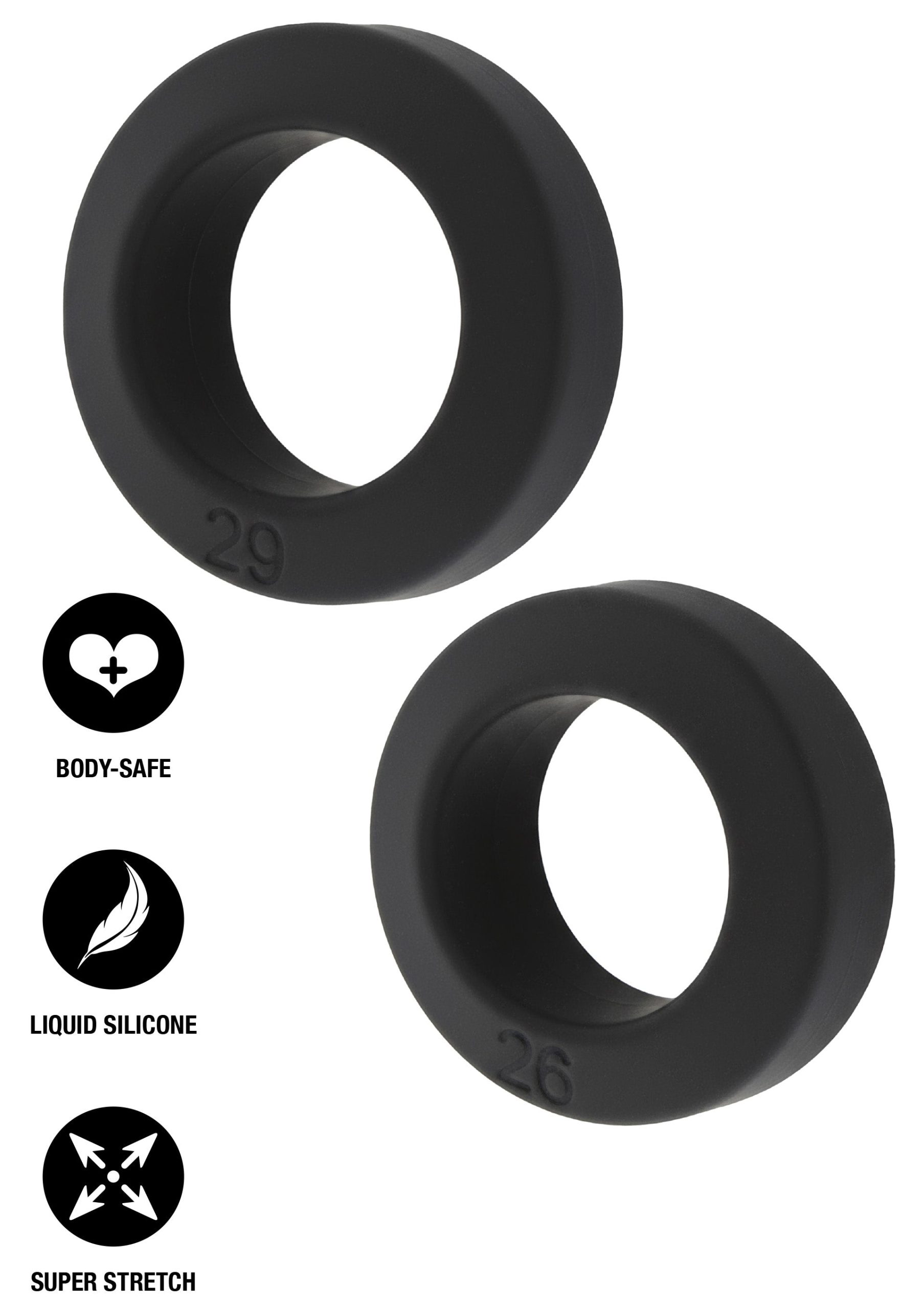 This set includes two large cockrings that can be worn separately or stacked together. Made from soft, super-stretch silicone for a secure but comfortable fit. The larger sizes offer extra comfort and strong support. Helps improve erection firmness and control. Simple design, easy to use, and easy to clean. Suitable for users who prefer a larger fit.