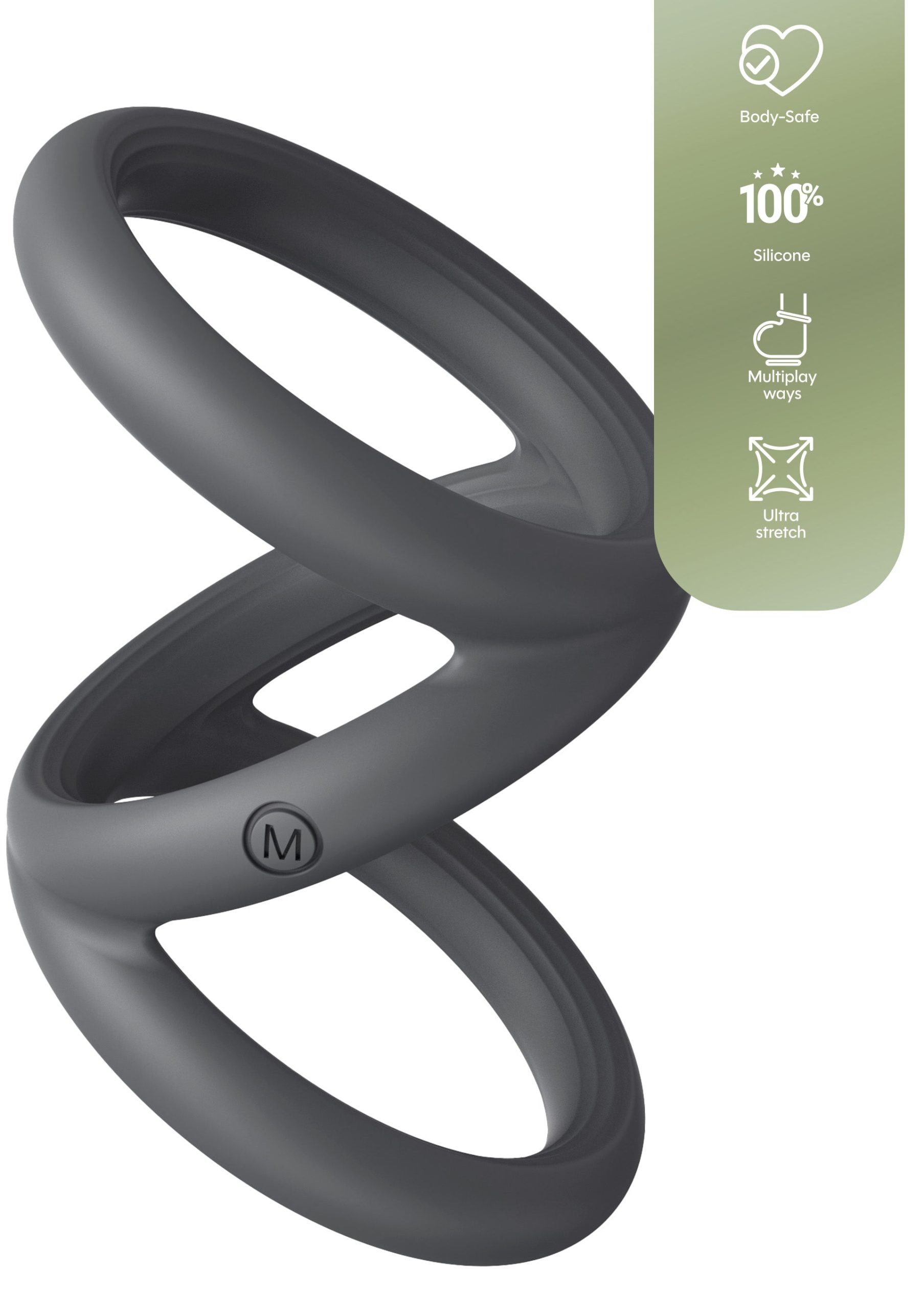 The Triple Cock & Ball Sling Medium is designed to provide firm support and controlled pressure with a comfortable fit. Made from 100% soft, body-safe silicone, the material feels smooth on the skin and offers strong stretch while keeping its shape. This medium-size sling features three connected rings that support the penis and testicles together. It creates a lifted look and enhances sensation through even, balanced pressure. The medium size offers a secure fit that suits users who want more room than a small size, without losing control or firmness. The non-porous silicone is easy to clean and safe to use with water-based lubricants. Durable and flexible, this sling is suitable for solo or partner play. Its clean design and neutral colour give it a modern, premium look that fits perfectly within the Playhouse Affinity Collection.