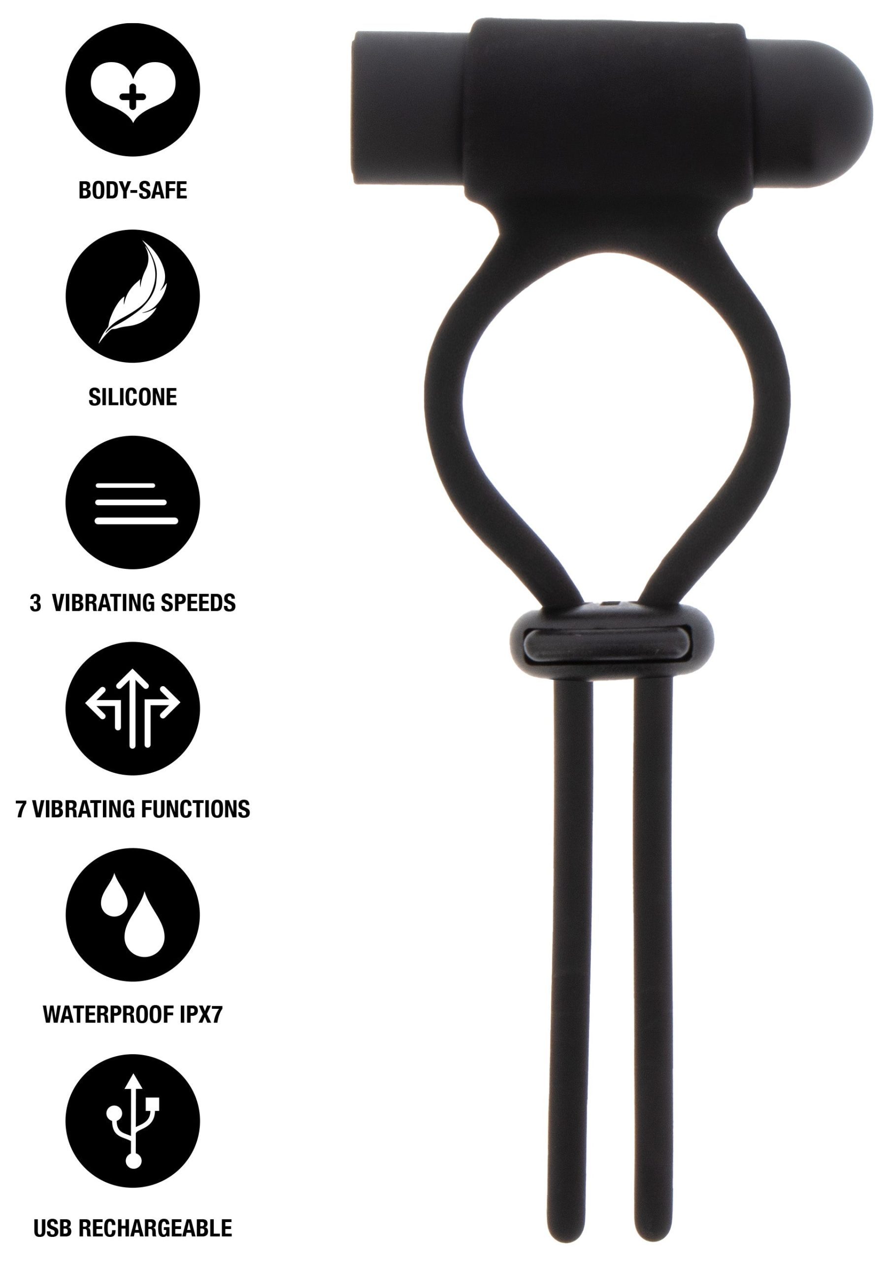 This cockring combines adjustable fit with powerful vibration. The flexible ring can be adjusted to your size, while the included bullet offers 10 vibration modes. Made from soft, body-safe silicone for comfortable use. The vibrations add extra stimulation for both partners. USB rechargeable and waterproof, making it easy to use and clean. A great choice for users who want more intensity and control.